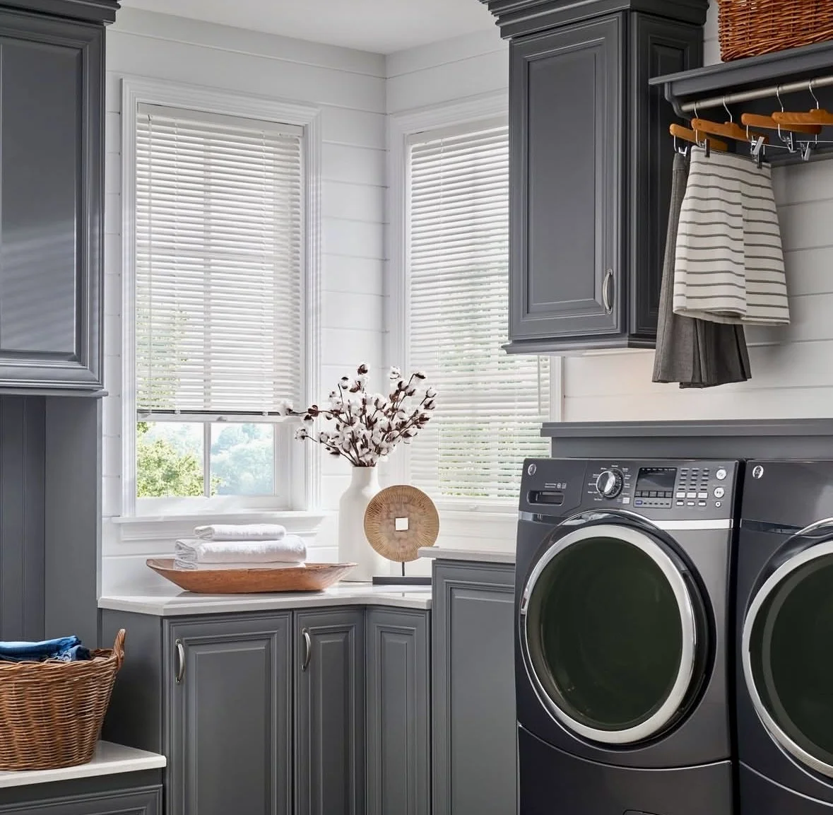 - Choice of Real Wood or Faux Wood - Enjoy the natural beauty and warmth of real wood or opt for the moisture-resistant durability of faux wood, perfect for kitchens, bathrooms, and laundry rooms.